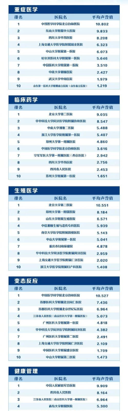 排名情况:四川大学、北京大学、北京协和医学院、复旦大学、华中科技大学、南方医科大学表现突出。