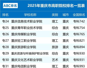 根据提供的信息,以下是重庆专科院校的专业排名情况: