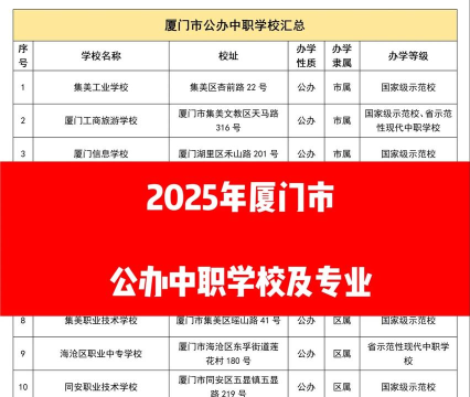 首页 教育资讯 2025年厦门中专专业排名