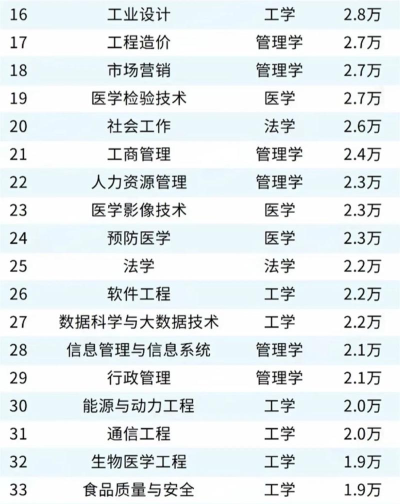 热门专业排名(部分)
