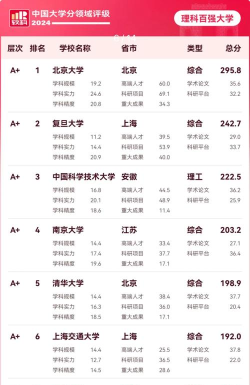 根据最近的信息,以下是部分中国本科理学专业的排名情况: