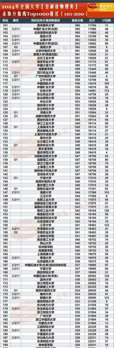 在2024年,甘肃物理专业排名靠前的院校包括: