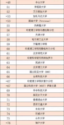 这些排名信息反映了亚洲高等教育机构的竞争力和学术水平,为学生选择学校和专业提供了重要参考。如果您需要更详细的信息或其他排名数据,请告诉我