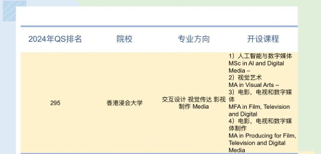 2024年香港艺术留学专业排名
