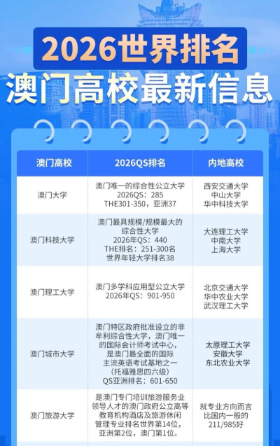 根据提供的信息,以下是澳门学校的专业排名情况: