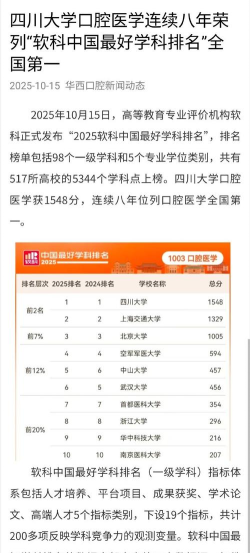 口腔医学专业在国内外享有盛誉,教学质量、科研实力和临床实践均居前列。