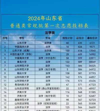 根据提供的信息,以下是山东学校法学专业的排名情况: