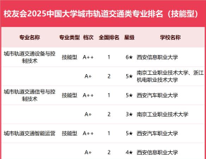 根据提供的信息,以下是安徽城市轨道交通专业排名情况: