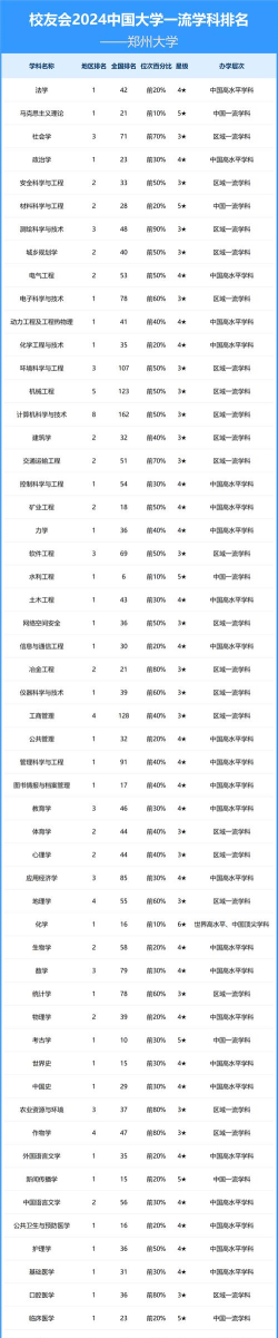 郑州大学的专业排名涵盖了广泛的学科领域,包括但不限于临床医学、化学、材料科学、工程学、药理学与毒理学、生物学与生物化学、分子生物学与遗传学、神经科学与行为学、免疫学、环境与生态学、物理学、社会科学、计算机学等。