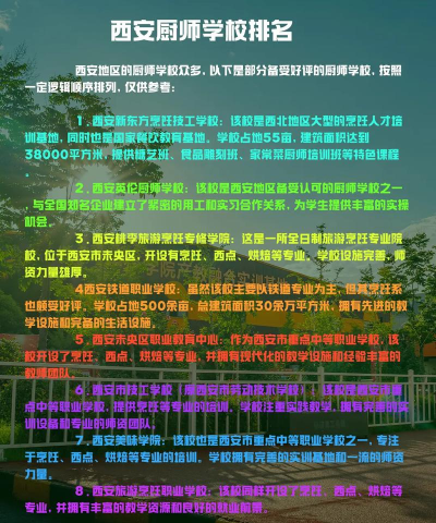 根据提供的信息,以下是2024年西安排名前六的厨师学校排名: