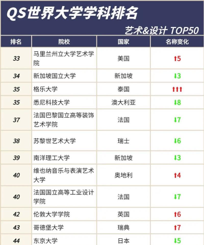 QS世界大学排名:艺术设计类未具体提及,但UCLA通常排名靠前