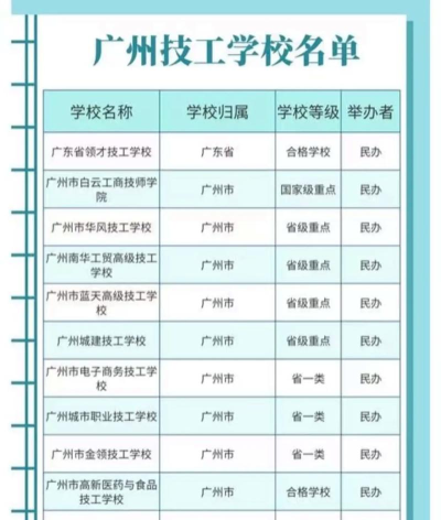推荐学校:广州市财经商贸职业学校、广州市旅游商务职业学校等。