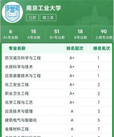 南京工业大学(Nanjing Tech University)的专业排名情况如下: