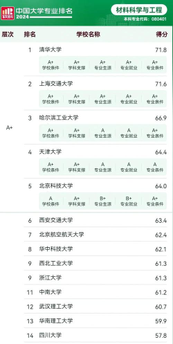 2024年材料专业最新全国排名