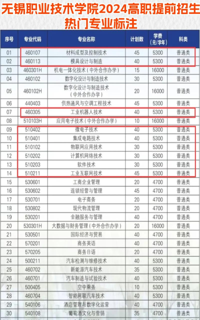无锡地区排名靠前的高职院校及其推荐专业如下: