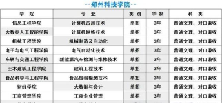 郑州信息科技职业学院:计算机应用技术、物联网应用技术、现代移动通信技术。