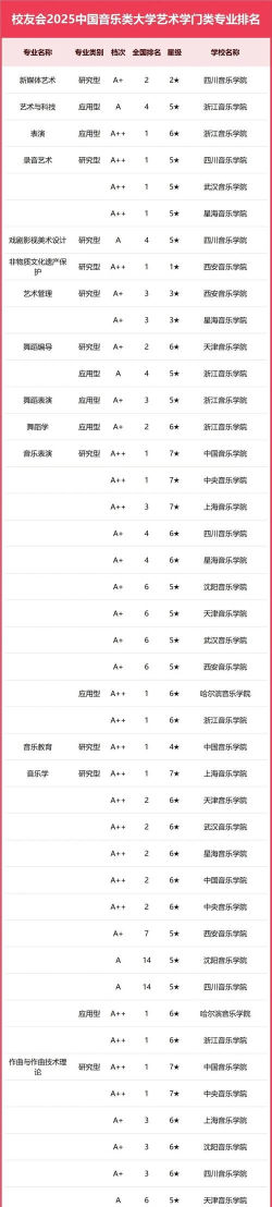 2025年艺术专业音乐专业大学排名