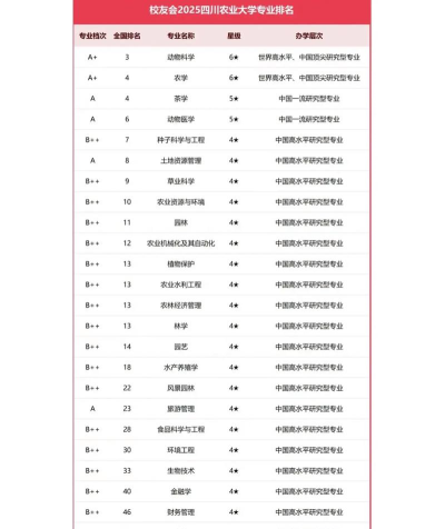 四川农业大学的专业排名情况如下: