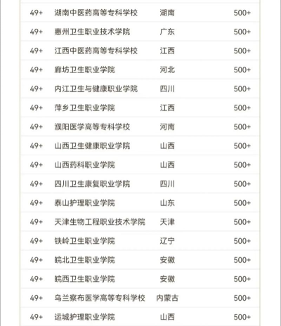 根据提供的信息,以下是部分中国高职医学院校的排名情况: