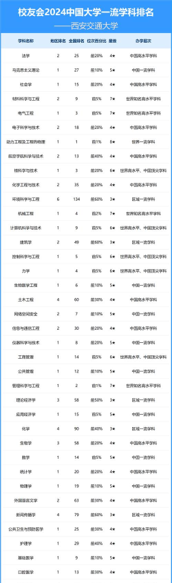 根据提供的信息,以下是2024年西安交通大学一些强势专业的排名情况:
