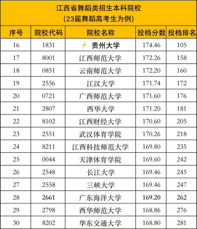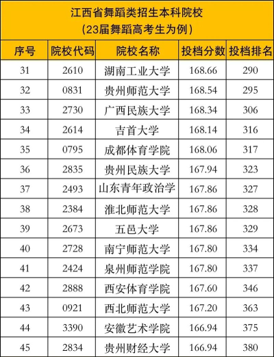 根据提供的信息,以下是江西舞蹈专业录取排名的相关信息: