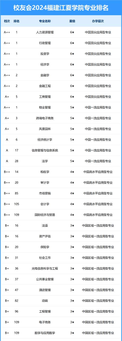 专业分档排名中,7个专业评为A++,3个专业评为A+,3个专业评为A,5个专业评为B++,14个专业评为B+,5个专业评为B