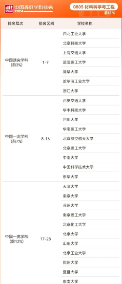 根据提供的信息,以下是2024年材料工程与技术专业的排名情况: