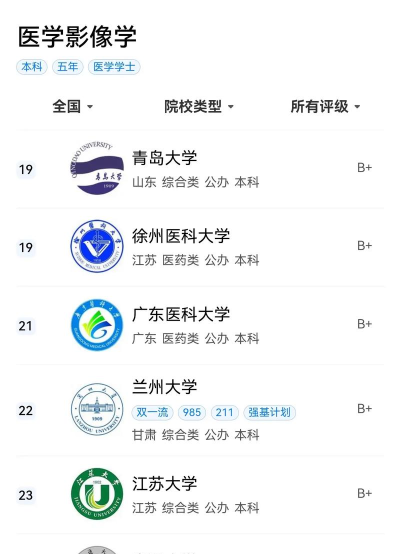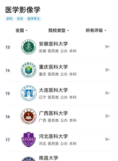 根据提供的信息,以下是2024年医学影像学专业的一些排名情况: