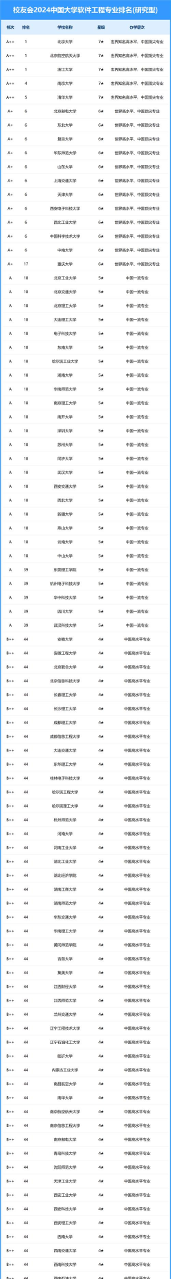 当前,软件工程专业在中国高校中普遍受到重视,许多知名大学都设有软件工程专业,并且排名靠前。以下是一些在软件工程专业方面表现突出的大学排名信息,这些信息基于不同来源的排名数据整理而来: