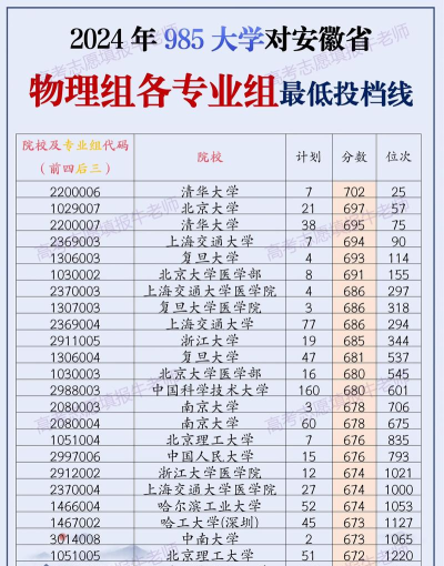 当前中国物理专业在985高校中的排名情况如下: