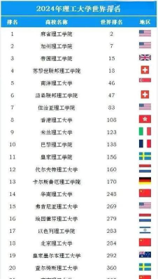 全球理工科大学排名(根据2024年QS世界大学排名)