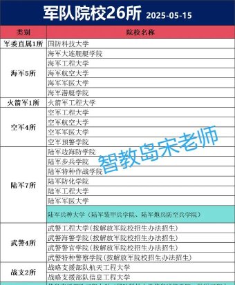 当前中国军校的专业排名中,国防科技大学(湖南长沙)通常排名第一,它是一所涵盖多个学科的综合性全国重点大学,包括理学、工学、军事学等,并且是“双一流”建设高校和985工程的重点建设院校之一。