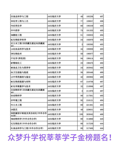 根据提供的信息,以下是2024年临沂大学的专业排名情况: