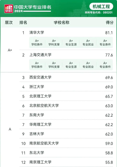 根据软科发布的最新排名,机械工程专业的排名情况如下: