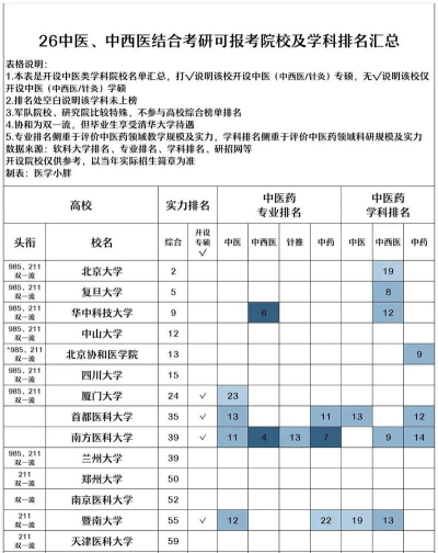 中医考研院校排名(根据第四轮中医学学科评估结果)
