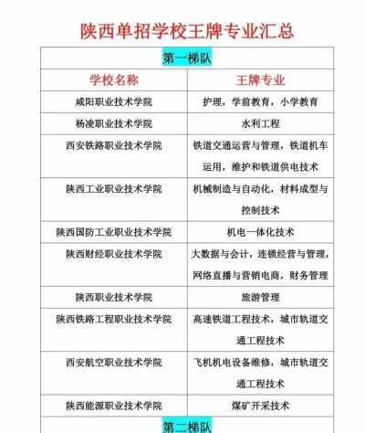 根据提供的信息,以下是陕西各大学王牌专业的排名情况:
