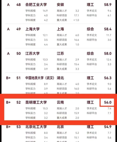 请注意,排名信息可能会随着时间和评价机构的不同而有所变化。如果您需要最新的排名信息,建议访问昆明理工大学的官方网站或相关教育评价机构的最新发布