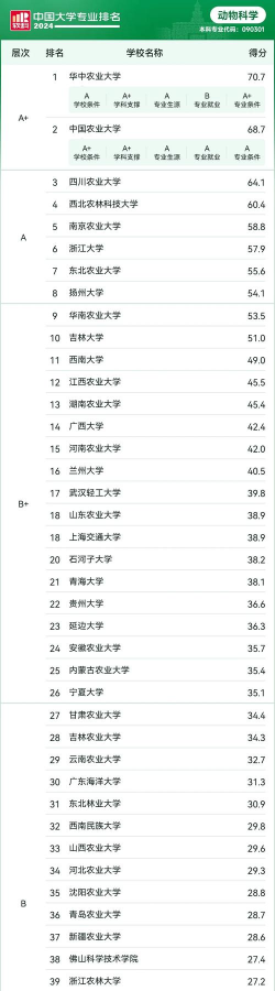 根据软科发布的2024年“软科世界一流学科排名”,南京农业大学在兽医学学科方面排名世界第一,中国农业大学在农学学科方面排名世界第一。扬州大学也在兽医学学科中排名第三,进入世界前十。