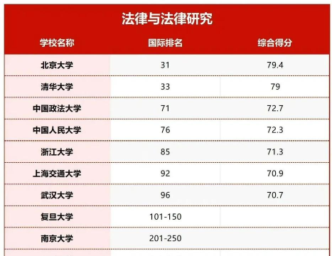 包括但不限于:复旦大学、南京大学、浙江大学、厦门大学、中南财经政法大学等,这些学校的法学专业也获得了较高的评级。