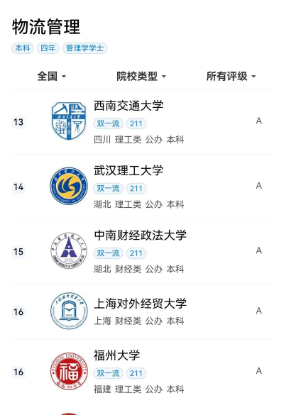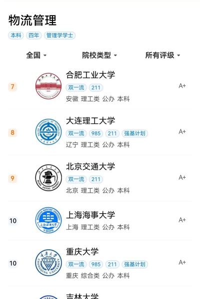 根据提供的信息,以下是2024年物流专业全国排名的部分榜单: