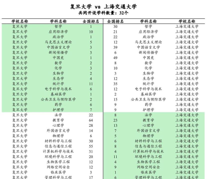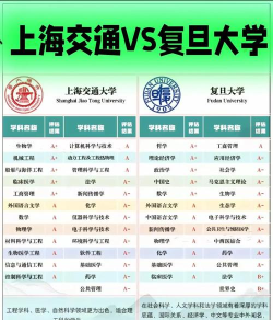 复旦大学和上海交通大学都是中国顶尖的高等教育机构,在多个学科领域都有卓越的表现。以下是两所大学在专业排名方面的对比: