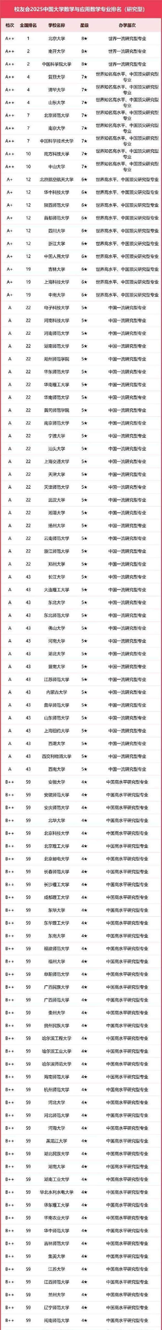 这些排名和评估结果体现了中国高校在数学研究和教学方面的投入和成果,以及它们在国际舞台上的竞争力。