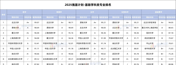 北京大学、 复旦大学、 中国科学技术大学:在数学与应用数学专业中位列前三。