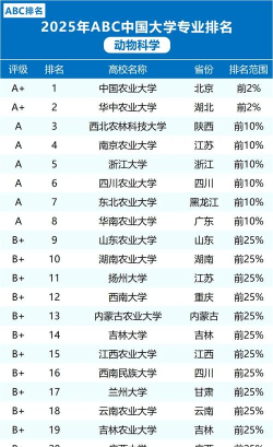 首页 教育资讯 2025年动物繁殖育种专业排名