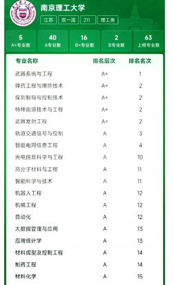 南京理工大学在多个学科领域表现出色,根据第五轮学科评估的结果,以下是其排名靠前的专业: