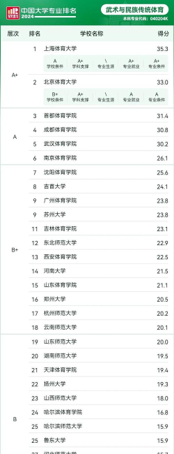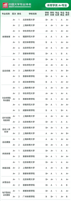 根据提供的信息,以下是2024年体育管理专业的一些排名情况: