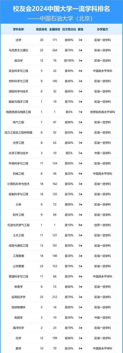 根据提供的信息,以下是2024年石油方面大学排名的一些关键点: