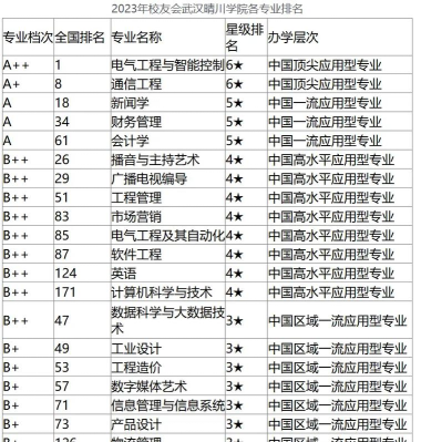 根据提供的信息,以下是武汉晴川学院的专业排名情况: