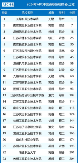 根据提供的信息,以下是江苏省教育专业专科的排名情况: