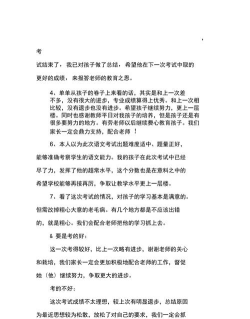 2.我和他(她)爸爸都看了他这次考试的试卷,虽然很意外他(她)的成绩这么低,但是也是在情理之中的,听说学校这次考试的难度非常大,孩子本身的学习就不是特别好,最多也就算一个中等生,但是同时也希望学校能够多对象孩子这样的中等生多写关心。